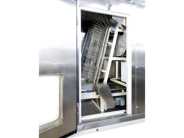 Tartinés d'une couche de crème via la machine à tartiner, les gaufrettes sont ensuite convoyées dans la tour de refroidissement pour blocs de gaufrettes, pour un refroidissement et un formage rapide, assurant leur croquant. Cette presse de refroidissement pour blocs de gaufrettes emploie un refroidissement à air externe ou un système de refroidissement à eau. La température de fonctionnement la plus basse de notre refroidisseur des blocs de gaufrettes est de -5℃, pour une température standard de 8℃ à 12℃.